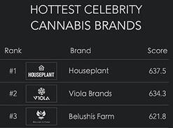 In the first-ever chart ranking the Hottest Celebrity Cannabis Brands, Seth Rogen's Houseplant comes out on top with the highest score for June. The scores are based on Pioneer Intelligence's marketing research .