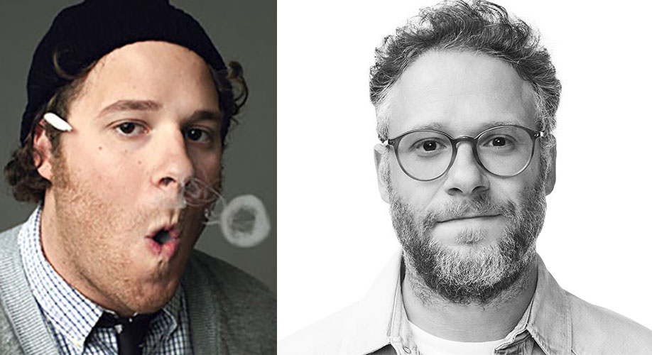 Smokin’ Seth photo from GQ shoot in 2007 and a black & white from 2025