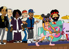 The next section is heady, full of fades and echo. Edwards mimics Jay-Z ("Brooklyn, we in the building"), then it's back to the peppy theme…