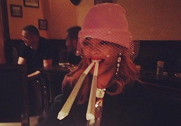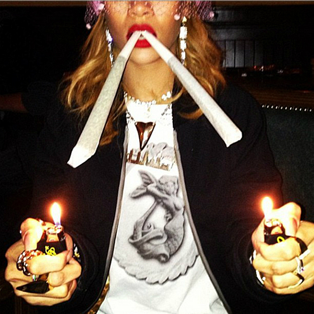 Rihanna took some time off from her concert tour to visit the Green House coffeeshop in Amsterdam on Saturday. She looked ready to spark up these two bomber joints. Rihanna played the Ziggo Dome before heading to Germany, sans spliffs.