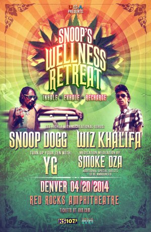 What: Day 2 of Snoop Dogg and Wiz Khalifa's 4/20 Tour is in - where else? - Colorado. YG and Smoke DZA are also on the sold-out bill. The only way to get in at this point is to buy a VIP pass for the show that also entitle entrance to the Cannabis Cup in nearby Denver. Later that night, DJ Snoopadlic will spin a set at the Gothic Theatre in Engewood, CO. Snoop and Wiz Khalifa are at WaMu Theater in Seattle, WA on 4/19.