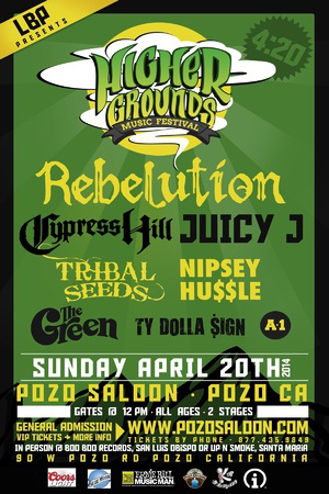What: Cypress Hill, Rebelution, Tribal Seeds, Nipsey Hustle, The Green, Juicy J all on the same bill, starting at 1 pm. Cypress Hill are also performing at Riverside Municipal Auditorium in Riverside, CA on 4/19.