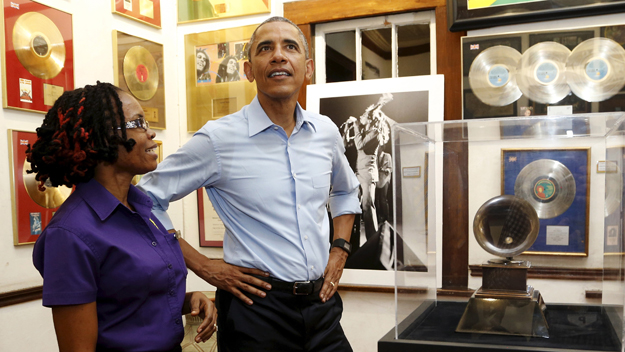 Afterwards, Obama visited the Bob Marley Museum at 56 Hope Road in Kingston. "I still have all the albums," he noted.