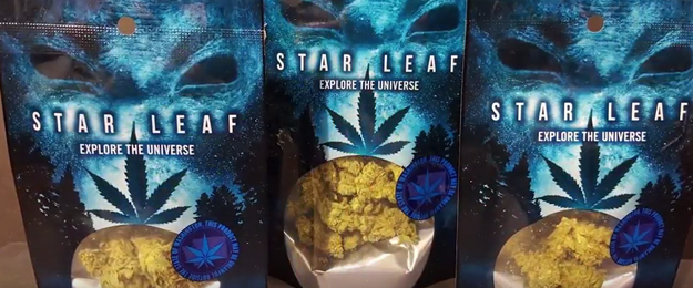 Based on Richard Cranor's 2015 flick that pits hikers against extraterrestrials who grow supernatural weed, the Star Leaf strains come in the standard varieties: indica, sativa and hybrid. The tagline on the packaging reads: "Explore the Universe."
