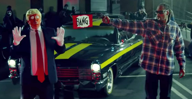 Trump was referring to Snoop's latest video, for the song "Lavender," in which Trump is depicted as a clown. After another clown is killed by a cop, Snoop encounters "Ronald Klump," and while hitting a blunt, he aims a fake gun at him, fires and the word BANG emerges from the gun, like in a cartoon. Later in the scene, Snoop passes the blunt to another clown, who also threatens Klump.