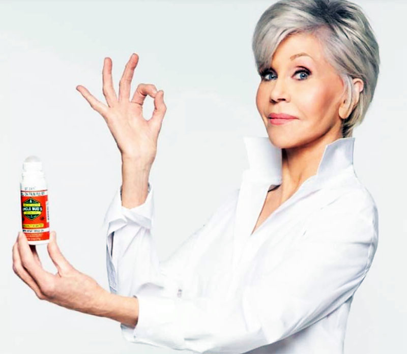 In a cheeky disco video posted at Instagram, Jane Fonda revealed she'sworking with Uncle Bud's Hemp in Los Angeles. Fonda showed off several of their products, including a hand santiizer and added this comment: