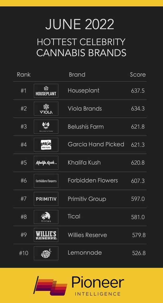 Here are the Hottest Celebrity Cannabis Brands scores based on performance in June: