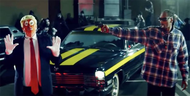 The video for Snoop's 2017 song, "Lavender," depicts Trump as a clown. After another clown is killed by a cop, Snoop encounters "Ronald Klump" and while hitting a blunt, he aims a fake gun at him, fires and the word BANG emerges from the gun, like in a cartoon. Later in the scene, Snoop passes a blunt to another clown, who also threatens Klump.