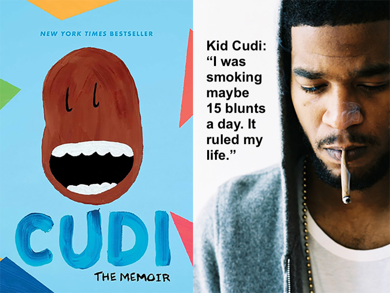 "I was really abusing it," rapper KId Cudi writes about marijuana in his new book, Cudi: The Memoir, according to People. "I was smoking maybe 15 blunts a day, wake up in the mornings, get high. It truly ruled my life.