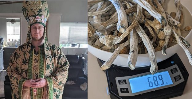 Dave Hodges (left) and 68 grams of psilocybin mushrooms (images via Instagram)