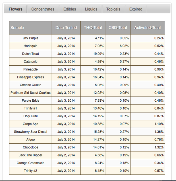 One of the licensed processors, Kouchlock Productions in Spokane (1919 E. Francis St.), had their strains tested at Analytical 360 (see report below).