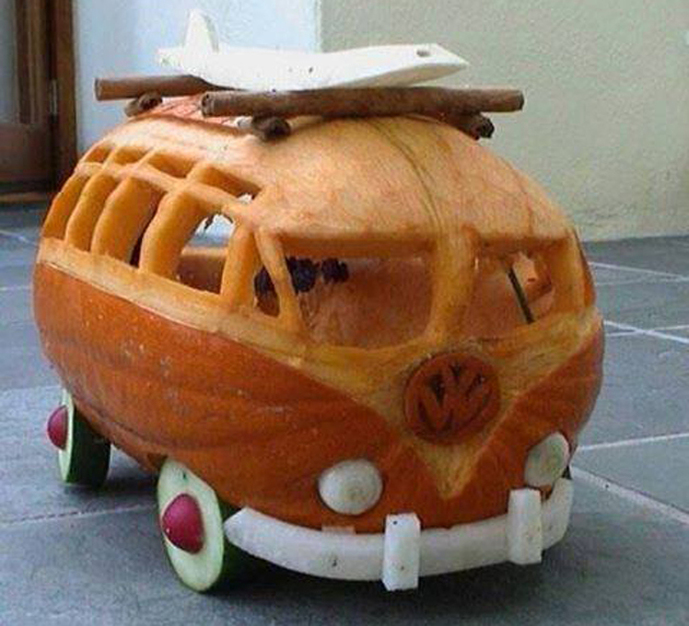 Now this is our kind of pumpkin! You can imagine a bunch of stoners inside puffing on some spicy weed, rolling down the highwayn in their VW bus with a surfboard on top.