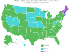 A survey of more than 150,000 tweets over the last month shows that two-thirds of the states favor smoking to vaping (20%) and edibles (less than 1%).