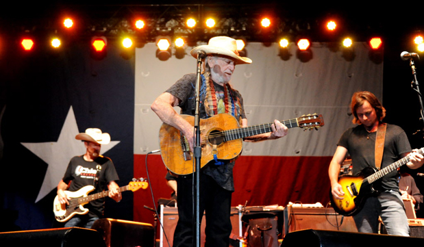 Nelson finally appeared on the South Stage for the day's final performance, opening as always with "Whiskey River." Nelson did a string of hits before introducing the band that included drummer Paul English, sister Bobbie Nelson on piano, Mickey Raphael on harmonica and son Lukas on electric guitar, who provided a moving tribute to Dallas legend Stevie Ray Vaughan on "Flooding Down in Texas."