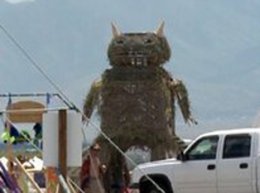 A three-story sized Wild Thing character from Where the Wild Things Are was set ablaze for the festival's culmination at 10:30 pm. People ringed the effigy in hopes of thwarting anyone bent on getting too close to the fire, but the speedy Wallace slipped through at 11 pm.