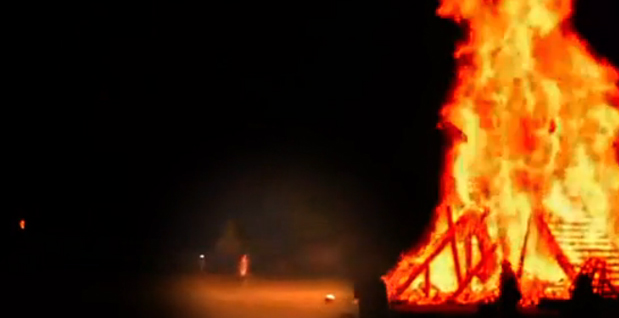 FYI: The clip below shows Wallace as he dances, then dashes toward the fire.