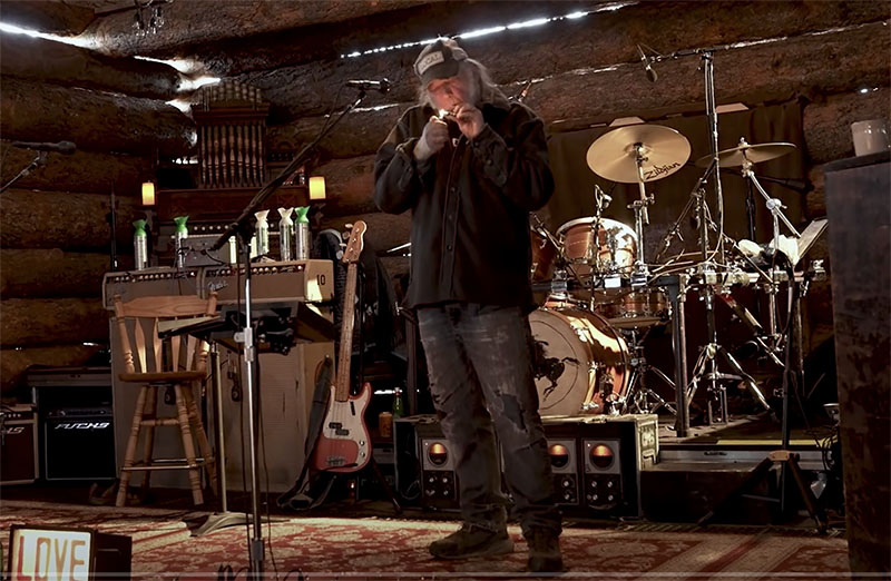 For Barn, Young assembles his old Crazy Horse band. They perform all the songs from the new album in a log cabin/studio on the Colorado range. A tipi and a totem pole sit nearby.