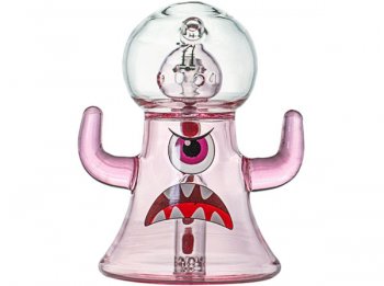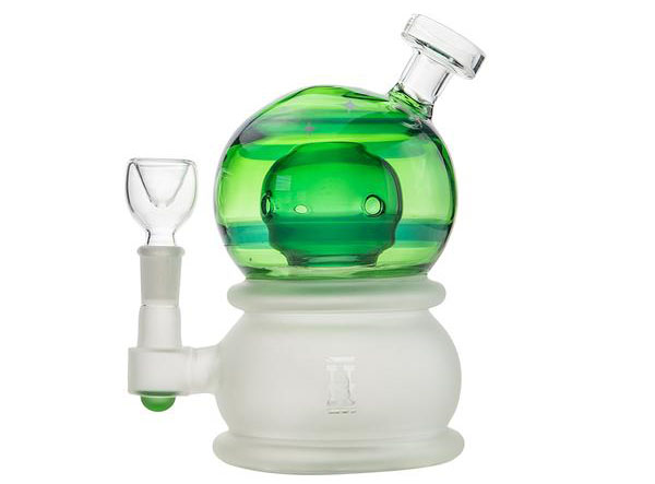 Featuring an iconic circular crystal ball design, when lit up, smoke circles inside the green globe forming a mysterious cloud. The frosted base adds to the illuminated smokey effect, and a central “ball” or “brain” emits smoke from holes as it cools before reaching the neck for inhalation.