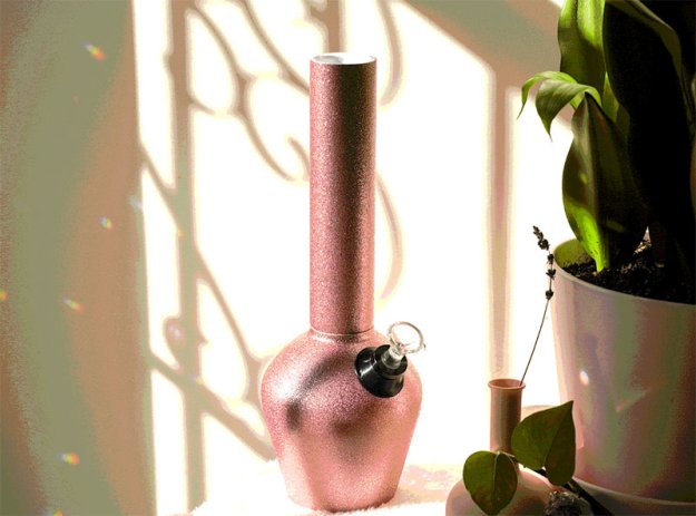 Build your own bong using stainless steel parts. Start with the Chill base ($120) and screw in the Chill neckpiece ($40). While the base generally comes in black and blue, there are nine different neckpieces to choose from (Classic Tie Dye to Black Smoke). The interior has a patented ceramic coating that hits and cleans like glass. A basic glass bowl is included. Fill with cold water and ice before use. It's really smooth and easy to clean. Justin Johnson from Chill advises: "You don’t even have to refrigerate it. The base works like a Yeti bottle, and the ice water will stay cold in it for up to 12 hours, even if it’s right in the sun."