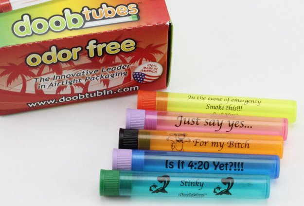 Based in Castro Valley, California, Ray Chico's Doob Tubes have been around for years. Easily customized with logos and sayings like 420 Meeting Reminder and Chronic, these colorful plastic containers are odor proof, moisture resistant and airtight.