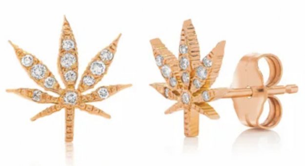 Cannabis consumers with expensive taste will enjoy browsing the Kind Fine Jewelry catalog, curated by New Yorker Shella Eckhouse. It includes a variety of potleaf accessories, from a set of stering silver cuff links ($300) to a gold cannabis flower pendant necklace ($800) to the splurge-worthy diamond cannabis-flower stud earrrings ($1,200).