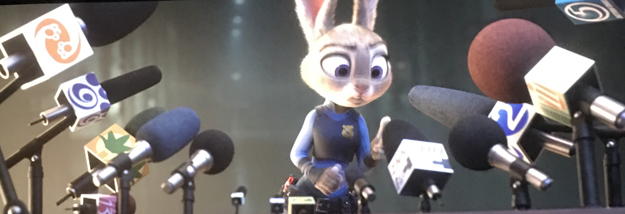 Late in the animated film, during a press conference with Judy Hopps (Gennifer Goodwin), a pot leaf is seen attached to one of the microphones.