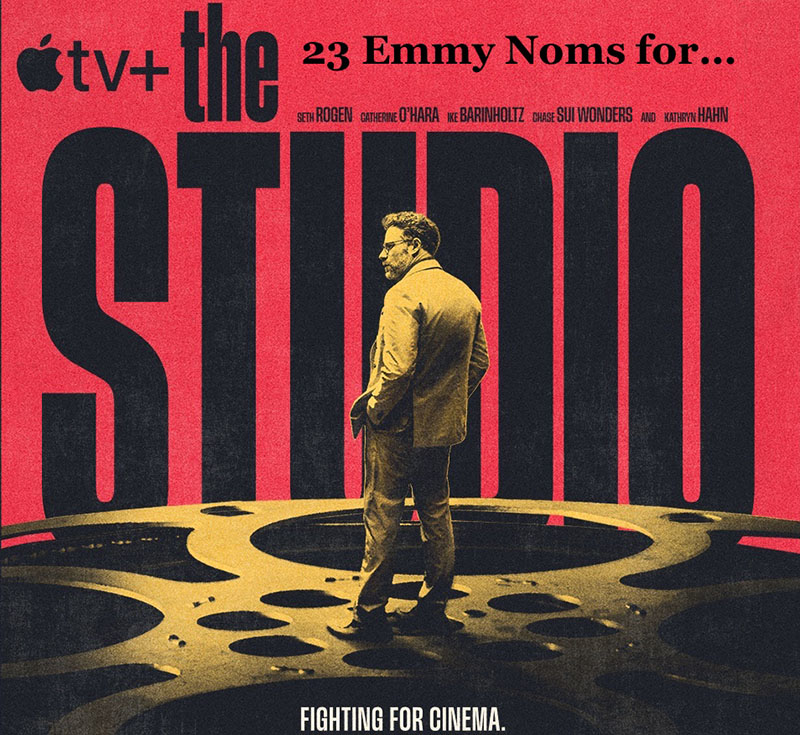 Season 1's mushroom-fueled double episode finale ("CinemaCon") put Seth Rogen and Evan Goldberg's Apple TV+ comedy series The Studio over the top. The rookie program received 23 Emmy Awards nominations, announced July 15. The Primetim Emmys will be presented on Sept. 14. The Creative Arts Emmys were given out on Sept. 6-7.