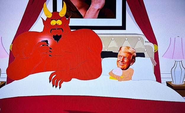 Trump ignores Randy's request and asks for a present, which turns out to be Towlie, who ends up in the president's bathroom.