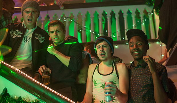 At first they try to be cool by offering weed in exchange for Delta Psi's cooperation. That lasts about as long as it takes to spark it up. Marc gobbles mushrooms and everyone parties, but the next day when it doesn't stop, Mac and Kelly begin plotting how to shut them down. It's one crazy plan after the other.