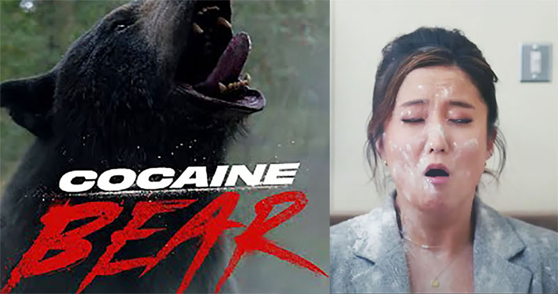 • Joy Ride - One of he funniest movies of the year, Adele Lim's outrageous travel flick features a coke scene that rivals Cocaine Bear. On a train in China, Audrey (Ashley Park), Lolo (Sherry Cola), Kat (Stephanie Hsu) and Deadeye (Sabrina Wu) unwittingly share a compartment with a drug dealer. Worried about a police search, Mary (Annie Mumolo) coats them with cocaine. "You're drug dealers now, bitches!" she declares, then forces them to snort and eat the large powdery stash. An even wilder non-drug scene happens later in this high-sterical comedy.