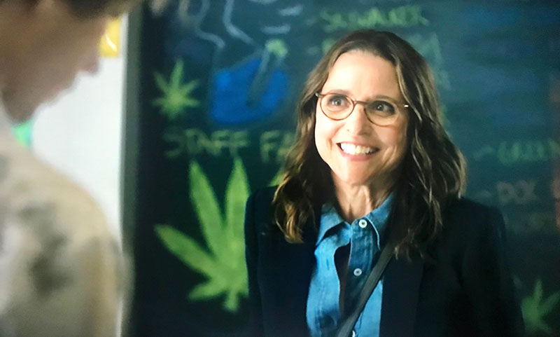 • You Hurt My Feelings – Julia Louis-Dreyfus stars in Nicole Holofcener's topical New York drama that features an illegal cannabis dispensary as a subplot. Beth's son Eliot (Owen Teague) works there. In one early scene at the shop, she tells him, "I'm not going to buy pot from you," and says the place looks dangerous. Mama knows best. In a later scene, two thieves rob the spot as Beth and Michael lie underneath the counter. It's a timely topic, with robberies not uncommon at unlicensed New York weed stores. Expect Louis-Dreyfus to receive numerous award noms for her role as an unhappy wife.