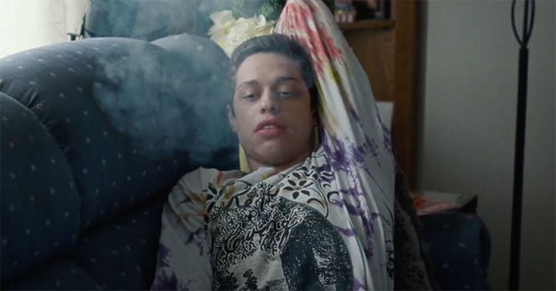 In the movie, Scott (Davidson) fights depression after his father dies in a building fire (not the Twin Towers). He and his friends hang out in his basement and smoke a lot of pot.